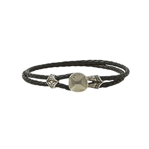 This bracelet from John Varvatos has distressed sterling silver accents on two natural leather strands.