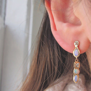 Feel the purifying rush of the Waterfall Mermaid Earrings by Misa Jewelry. May the powerful flow of opal and aquamarine cascade through.