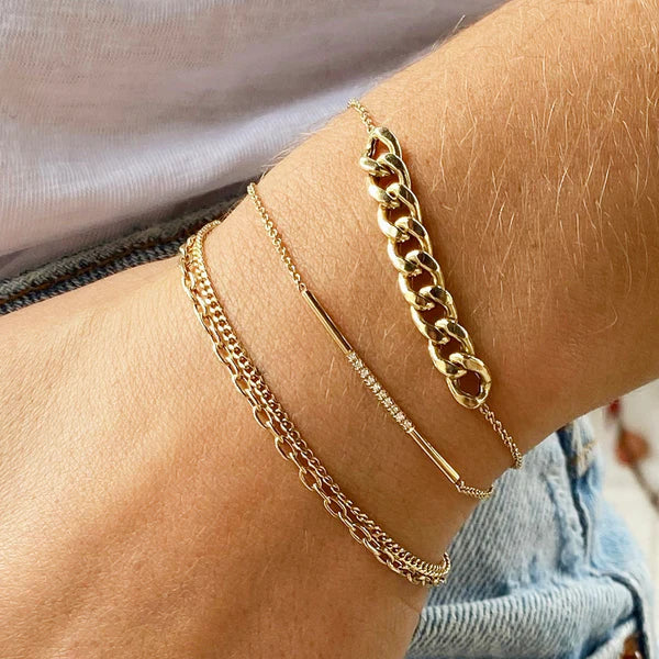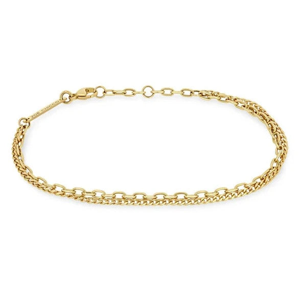From Zoe Chicco, this bracelet is made out of 14k gold double chain bracelet with extra small hollow curb chain and small square oval link chain connected together